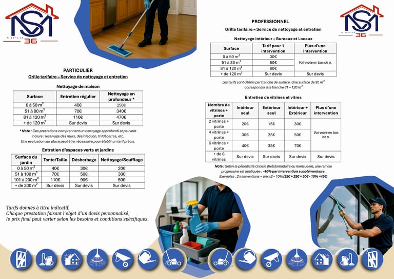 Entreprise M Service 36 offre des services de nettoyage de maisons, bureaux, vitrines, entretien de locaux, jardins et espaces verts à Châteauroux et alentours.