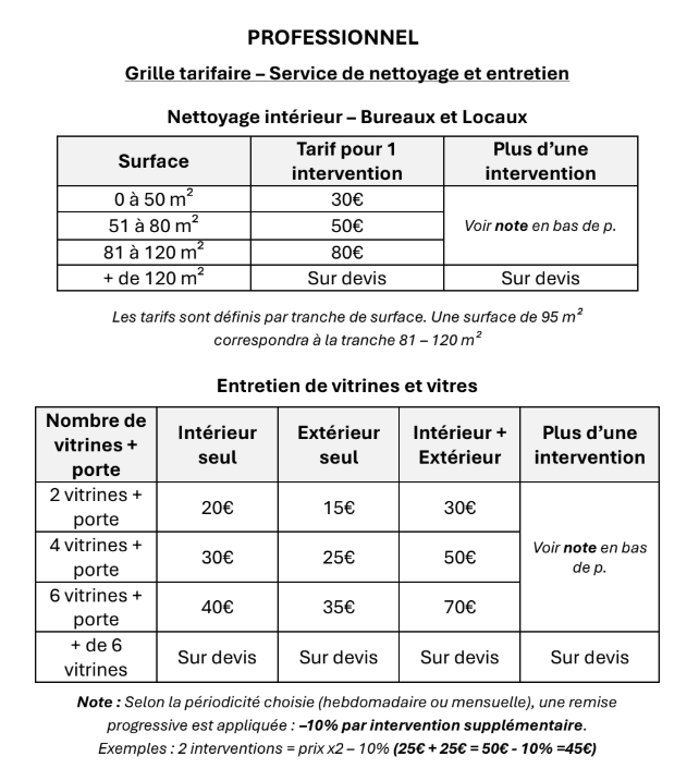 Nettoyage de Bureaux, Locaux et Vitrines